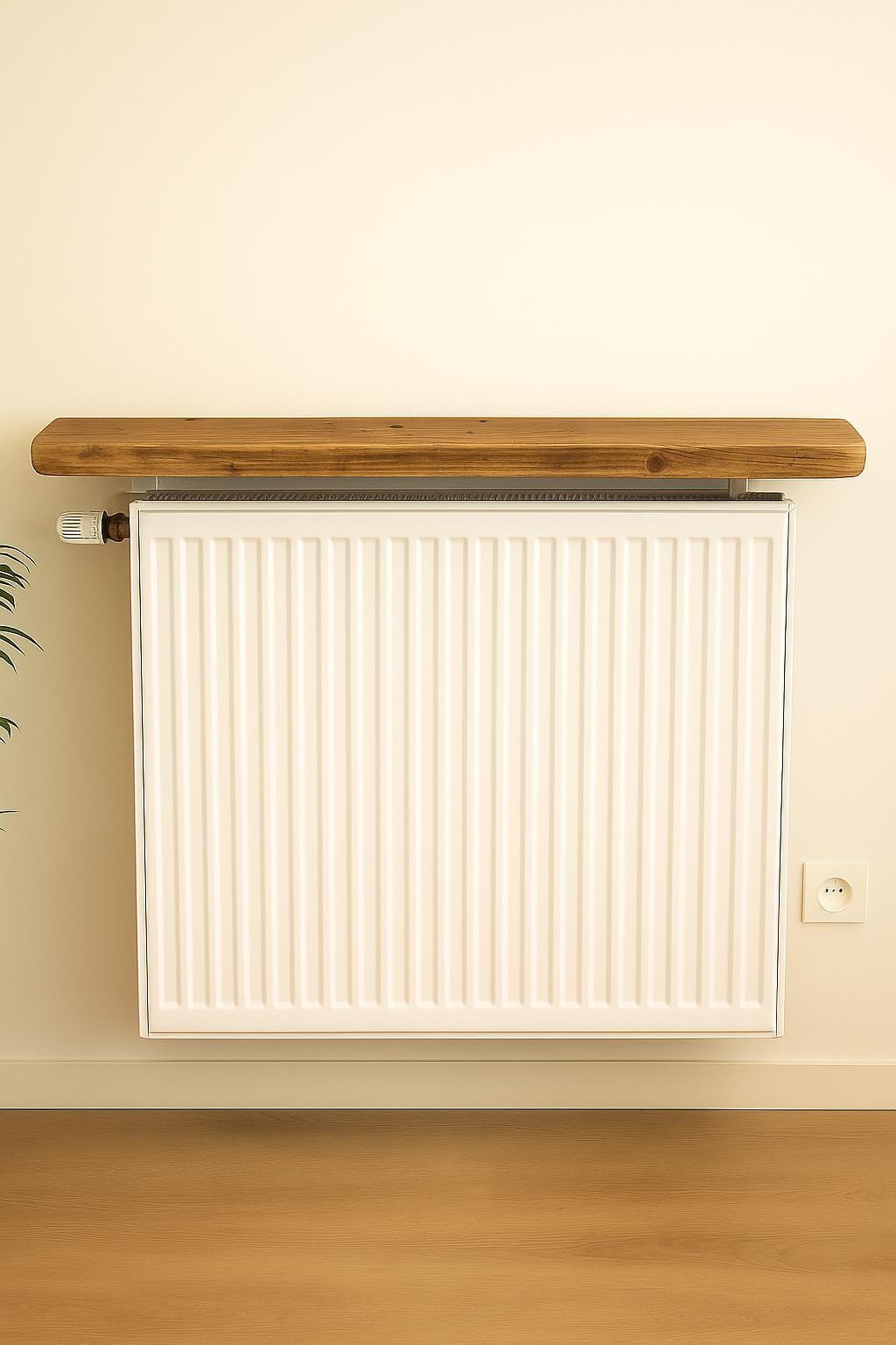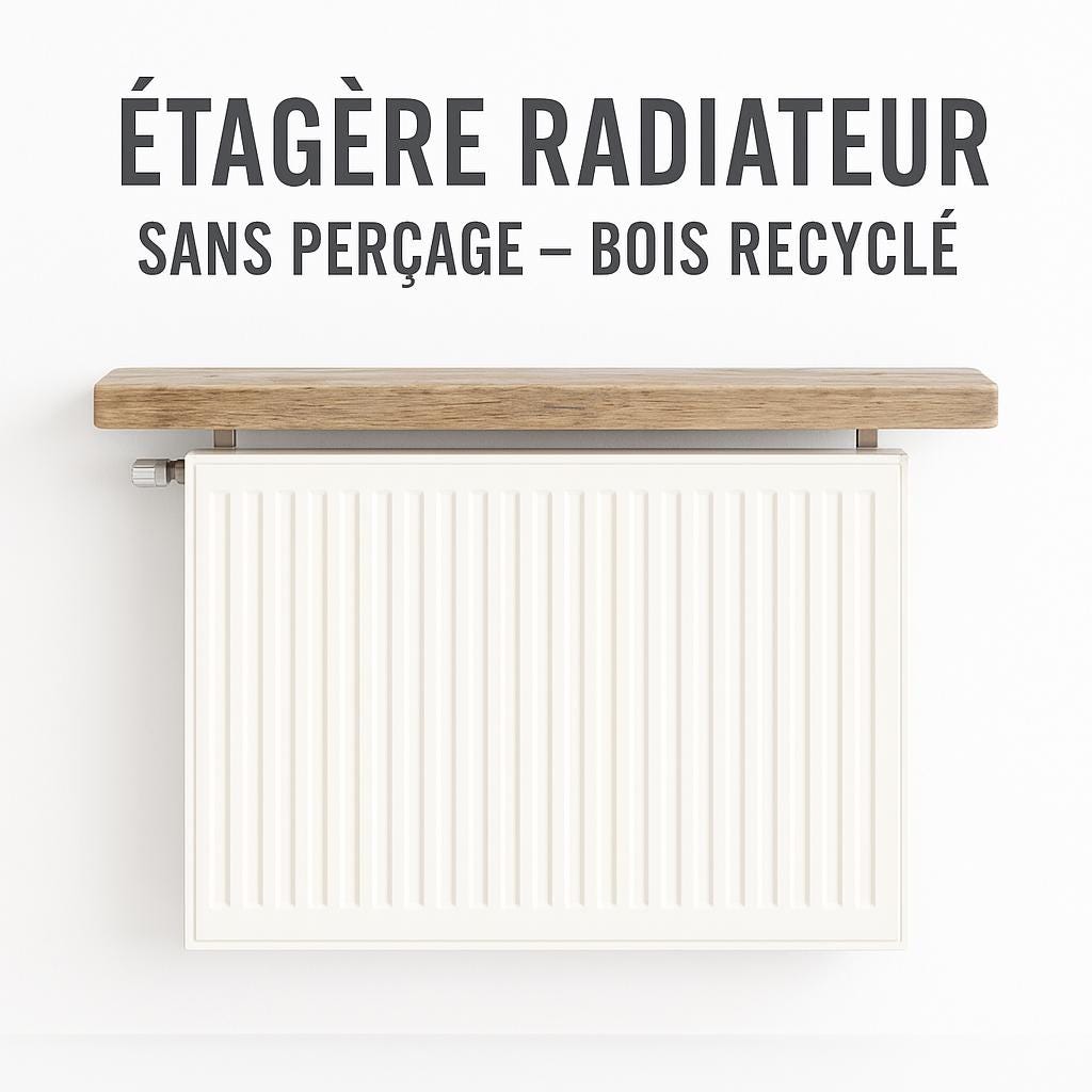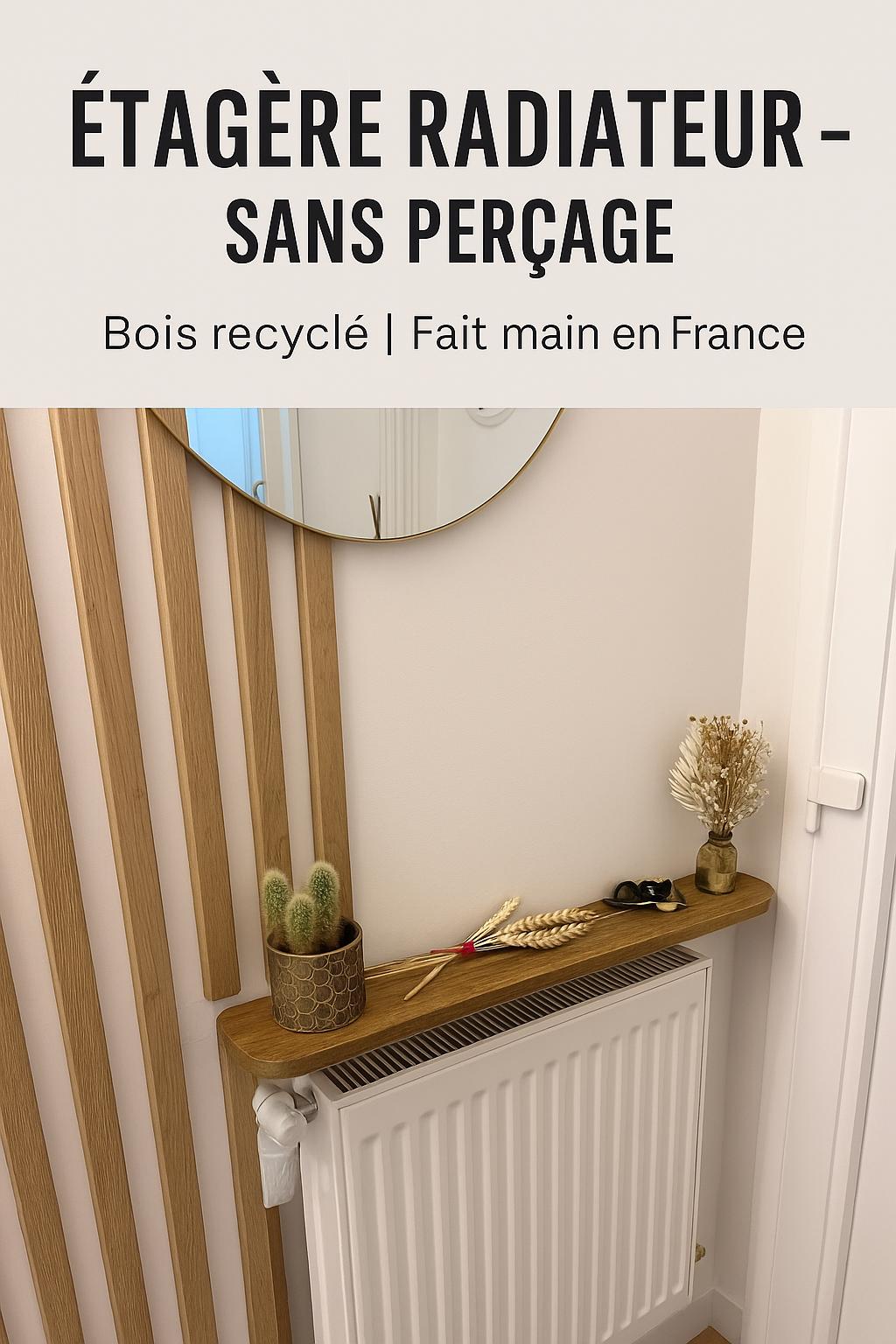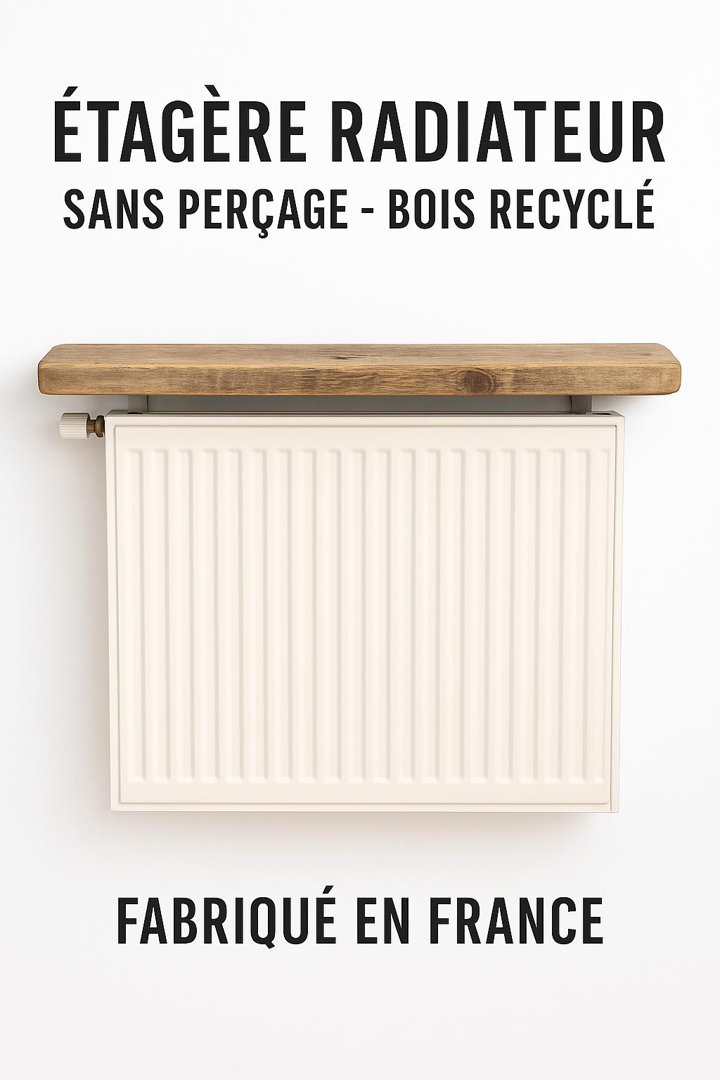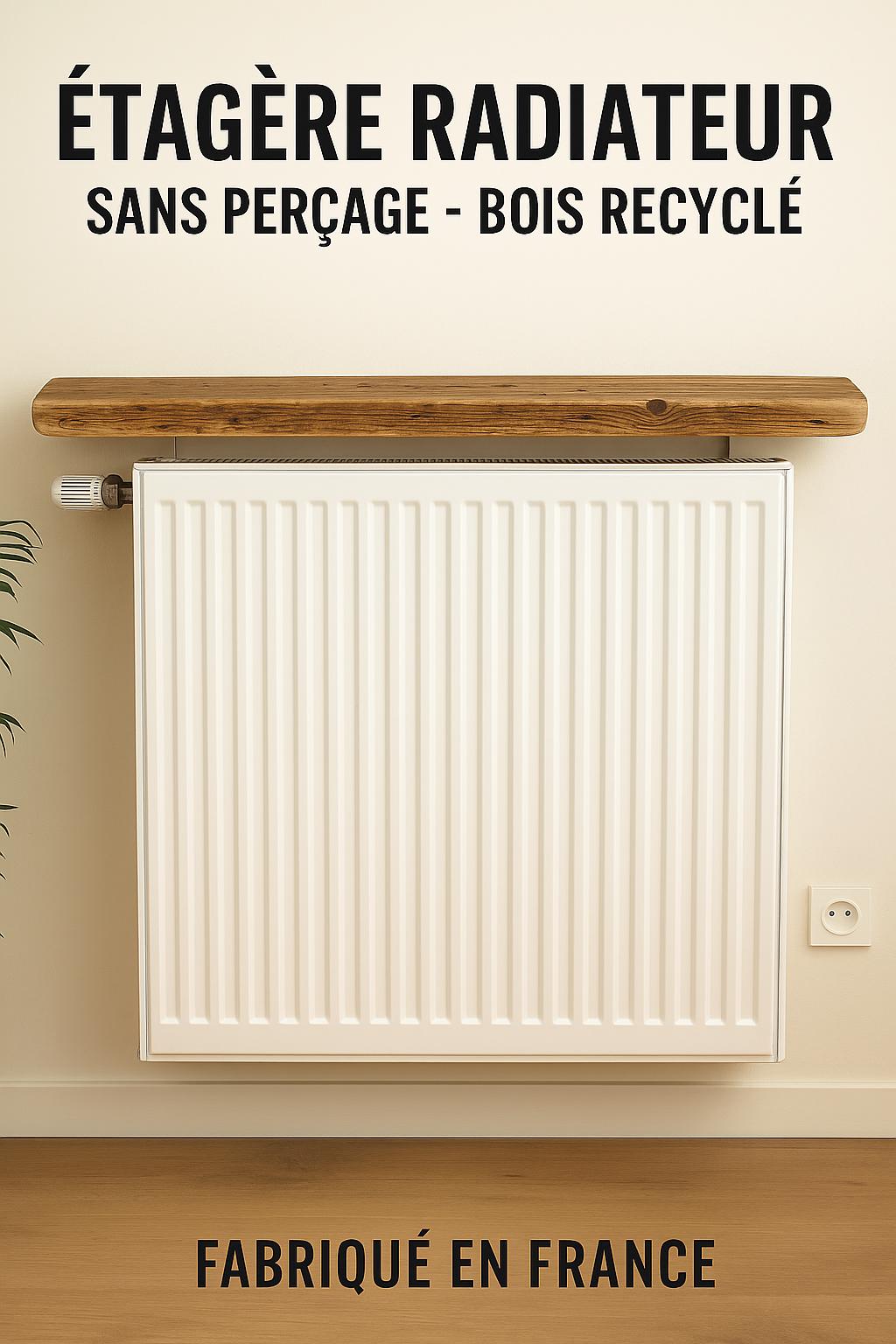 Transform your radiator into a decorative and functional space with this recycled wood shelf, handmade in France.