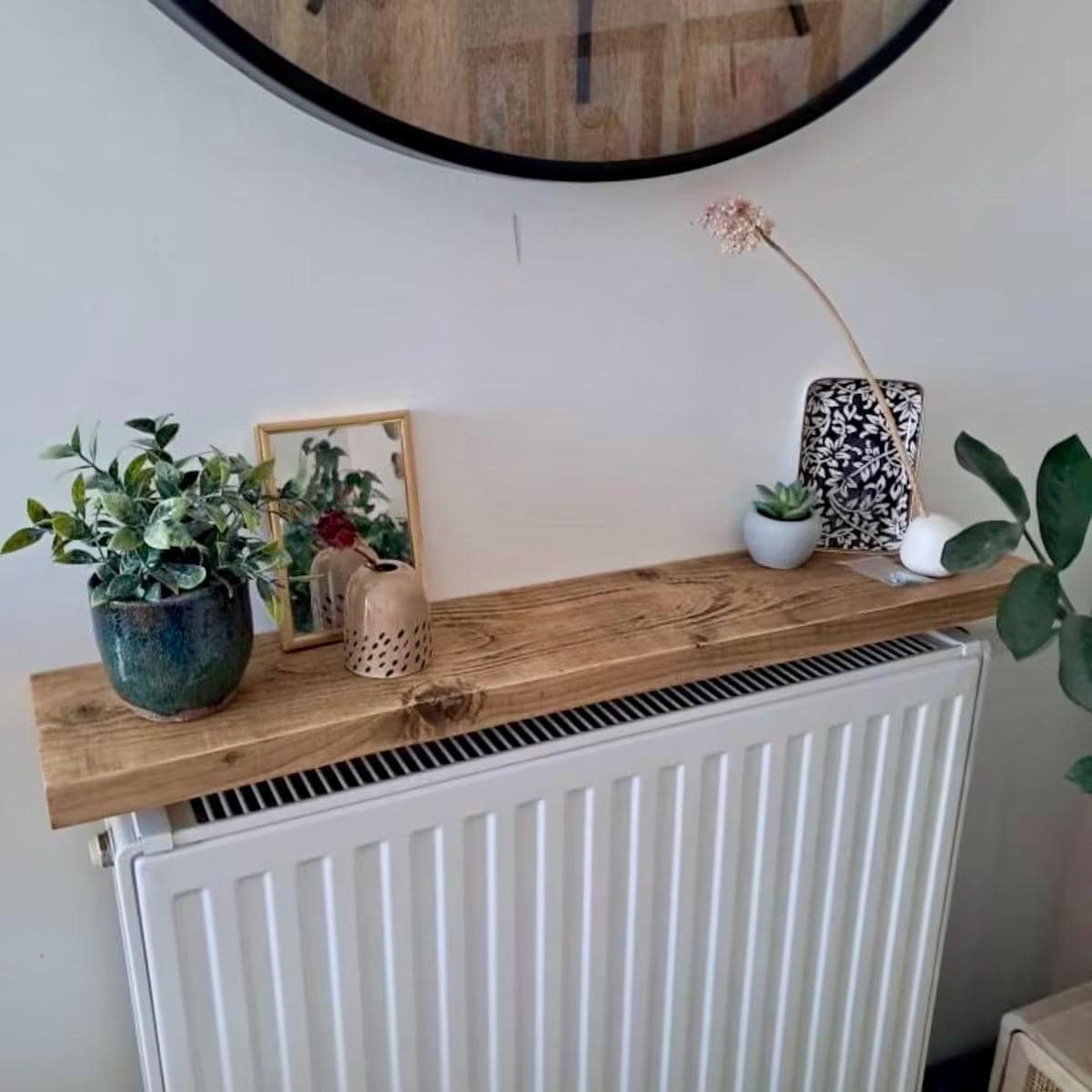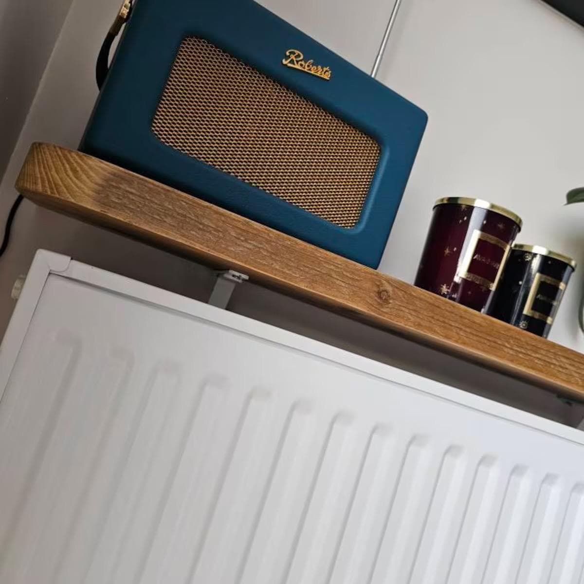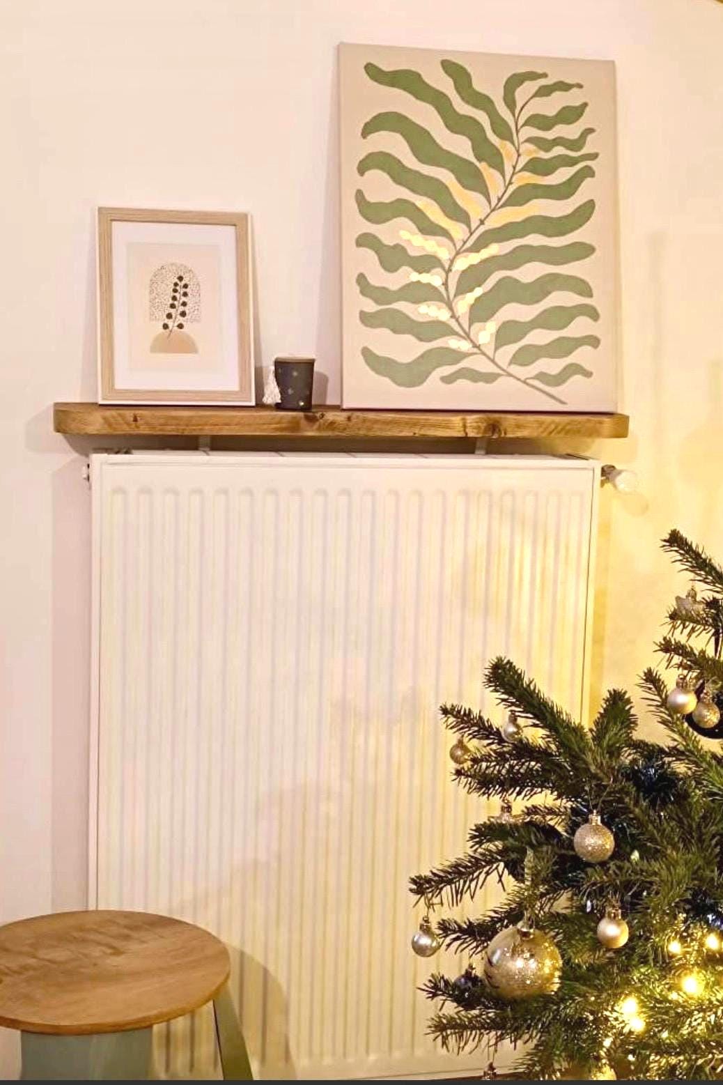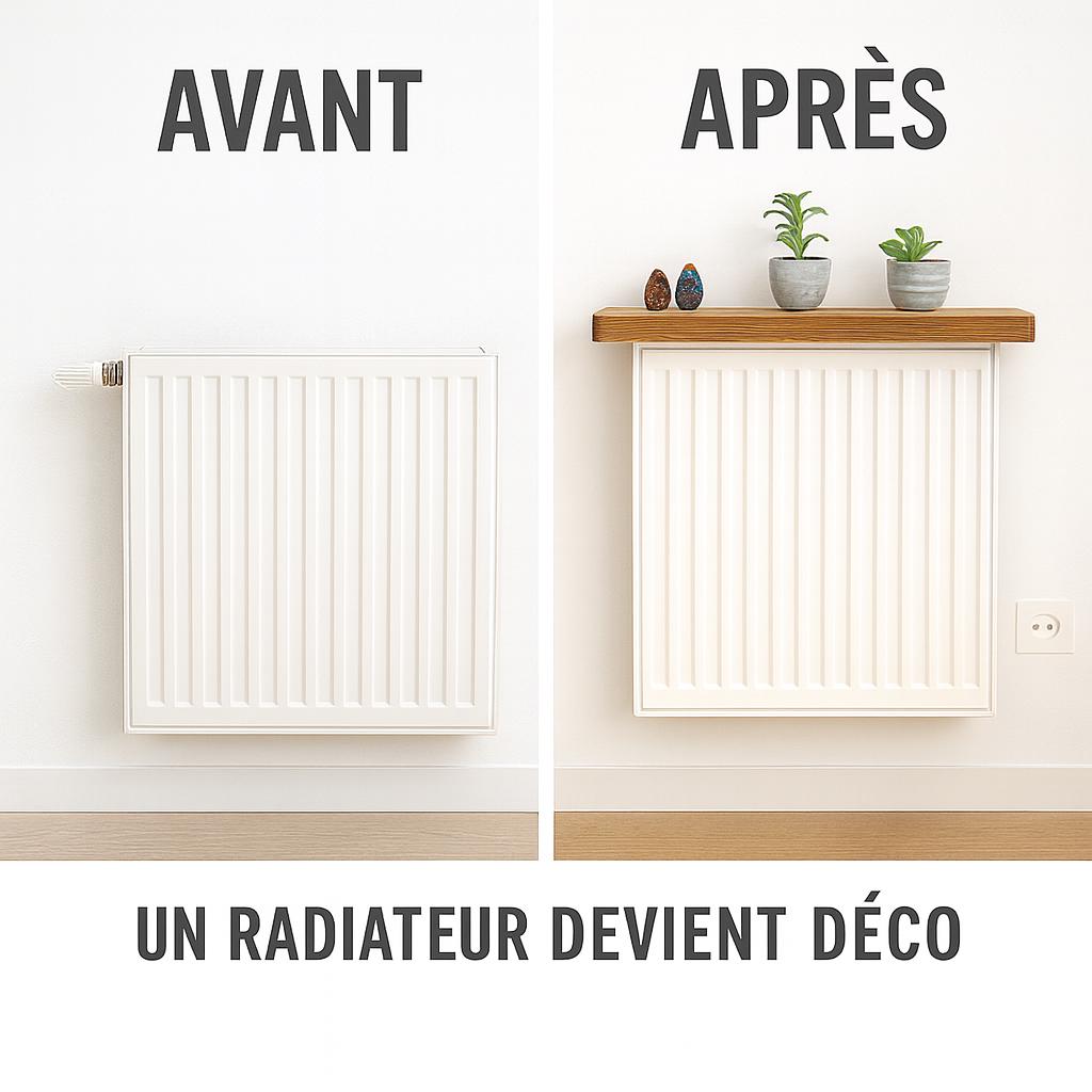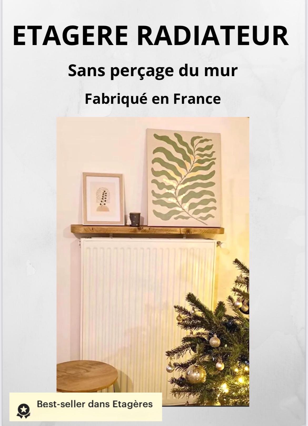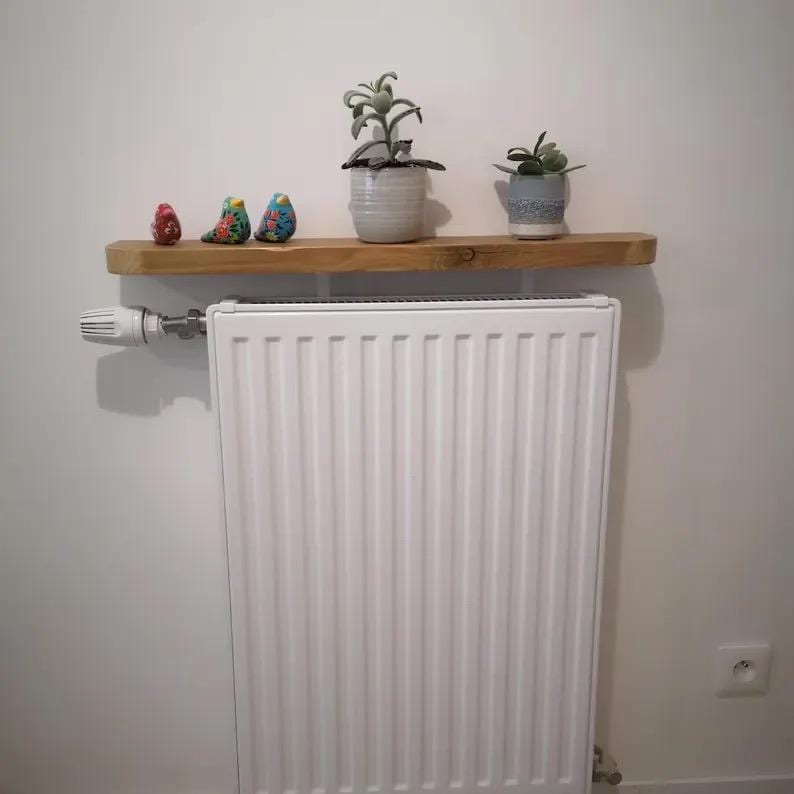 Transform your radiator into a decorative and functional space with this recycled wood shelf, handmade in France.